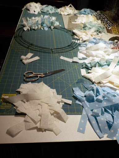 I didn't have 4 sheets of identical paper that I liked, so I opted for 4 different, coordinating pieces. While the whole room is white with dark blue-gray trim, the sewing area has an accent of Tahitian Breeze (sea-glass green). The office area ended up with a purple accent. That wasn't really planned, but I like it. Because of that, I chose purple scrapbook papers.